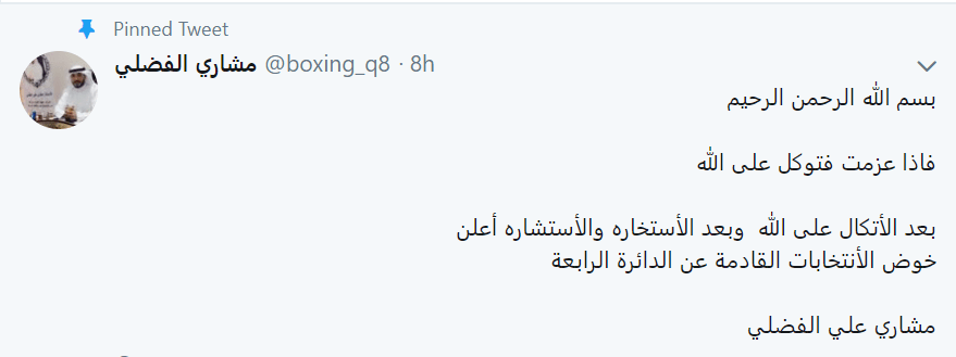 مشاري علي الفضلي يعلن ترشحه إنتخابات مجلس الأمة القادمة عن الدائرة الرابعة نشرت بواسطة: ALHAKEA في مجتمع 2017/09/12 0مرتبط 2017-09-12ALHAKEA tweet